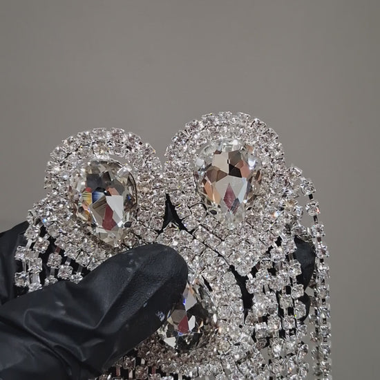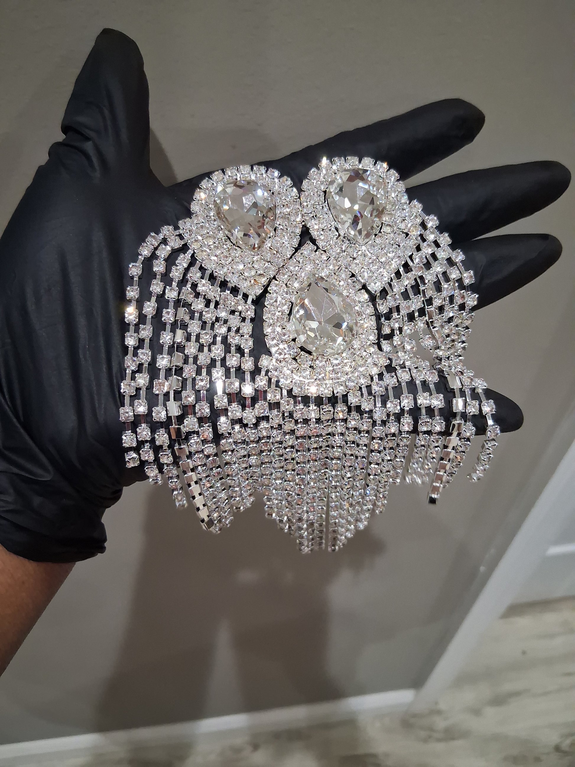 The image displays a rhinestone tassel shoulder epaulet, which is a fashionable accessory designed to add glamour to clothing.